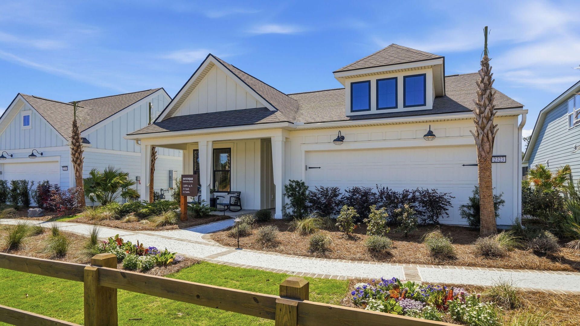 The very first and ONLY quick move-in home in the coveted neighborhood of Del Webb Point Hope. This 55+ Active Adult community is conveniently located within Point Hope and is minutes away from Daniel Island and Mt. Pleasant. Only a 20-minute drive to Sullivans Island and Isle of Palm Beaches!! The neighborhood features a Lifestyle House and a future 23,000 sq. ft. amenity center with indoor and outdoor pools, fitness center, aerobics studio, meeting rooms and social areas, pickleball courts, tennis courts, and so much more! The Mystique floorplan features 3 full bedrooms and a flex room all on one floor! No carpet throughout the home. Upgraded KitchenAid appliances in a gourmet kitchen with double ovens. This home has a spacious extended gathering room overlooking a screened back porch.